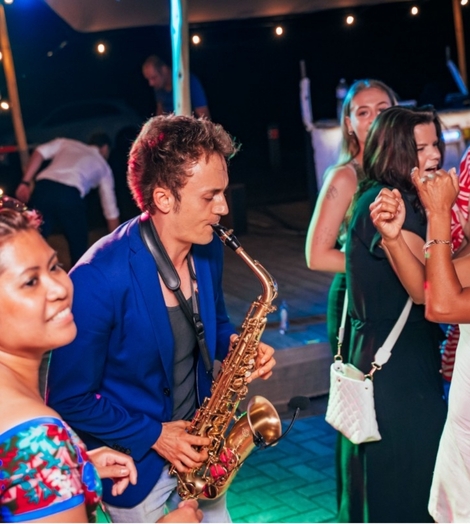 Het diner is het rustigere hart van de dag. Hier wordt gelachen, getoast en misschien zelfs een traantje weggepinkt tijdens speeches. Maar het is ook hét moment waarop de sfeer richting de avond begint te kantelen. Live muziek tijdens het diner tilt die overgang op een subtiele manier naar een hoger niveau.