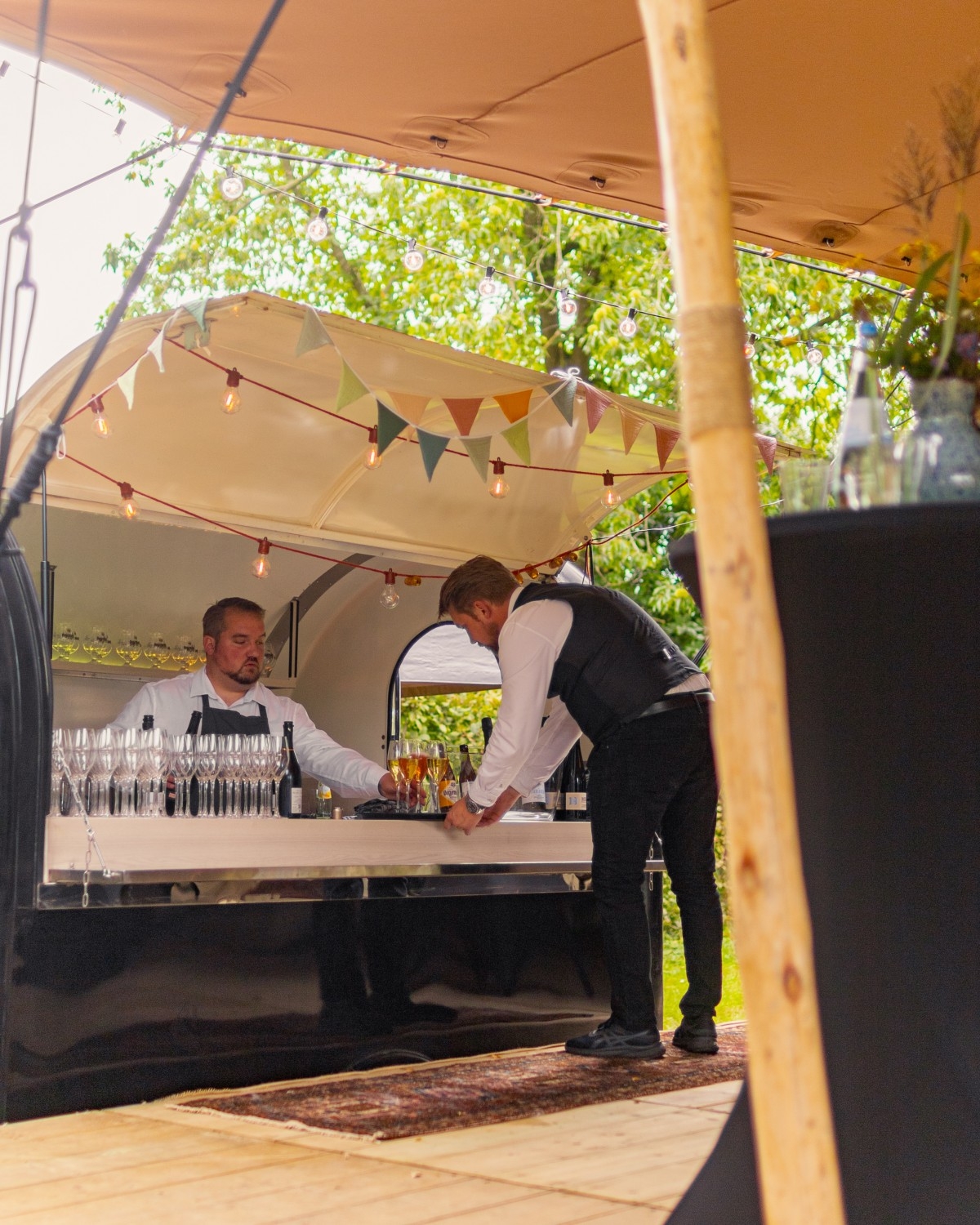 Kies ook enkel voor onze professionele bediening met of zonder ons materiaal (bars, glaswerk, staantafels,….)