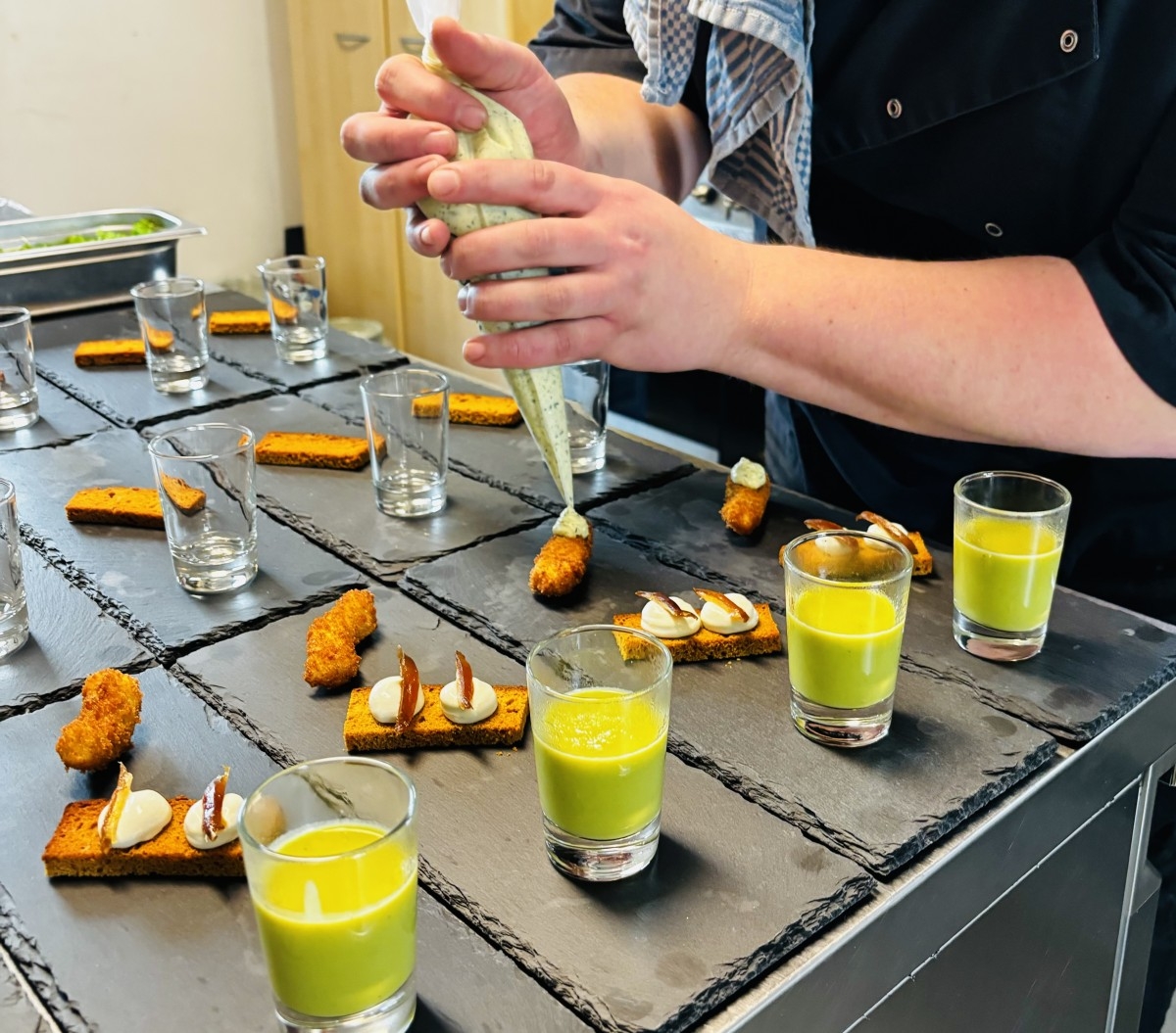 Van hapjes, sharing food, foodtruck of -stand tot een volledig menu aan tafel of in walking diner met zorg uitgewerkt om aan ieders smaak en wensen te voldoen.