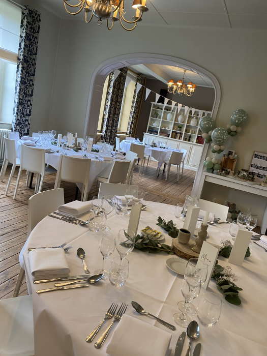 Het binnenplein, de tiendenschuur en maar liefst zes zalen die nu luisteren naar liederlijke namen, staan ter beschikking van de genodigden voor het beleven van huwelijken, jubileums, verjaardagen, babyborrels, communiefeesten en vele andere feesten. De zalen en zaaltjes worden ook verhuurd voor plaatselijke plechtigheden en rouwdiensten.